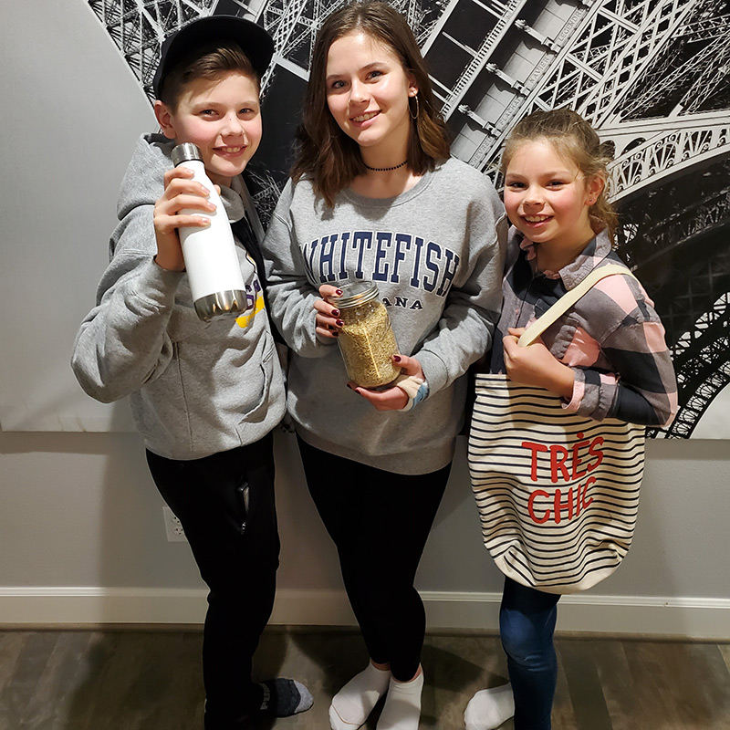 (Left to right) Rafael Bloch never goes to lacrosse practice without his reusable bottle. Erinn likes the grocery store’s bulk section (it looks like a candy store). Zoe is always “chic” when she goes to the grocery store with her reusable bag.
