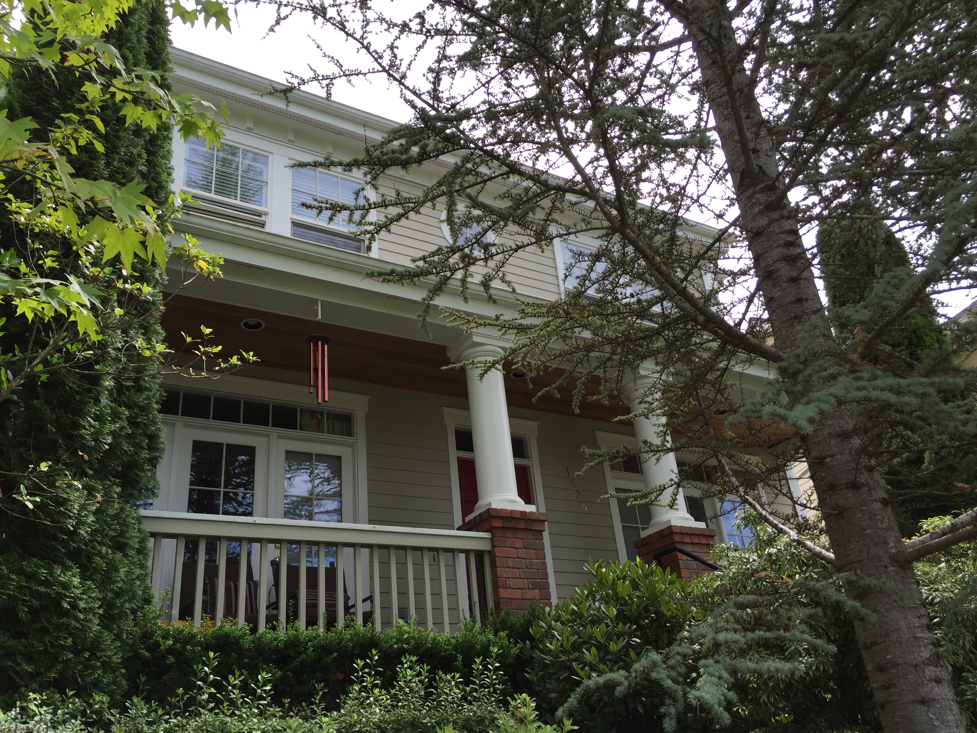 A couple of Ashland Park homes are delightfully hidden by mature gardens, this neighborhood being the oldest in Issaquah Highlands. PC Nina Milligan