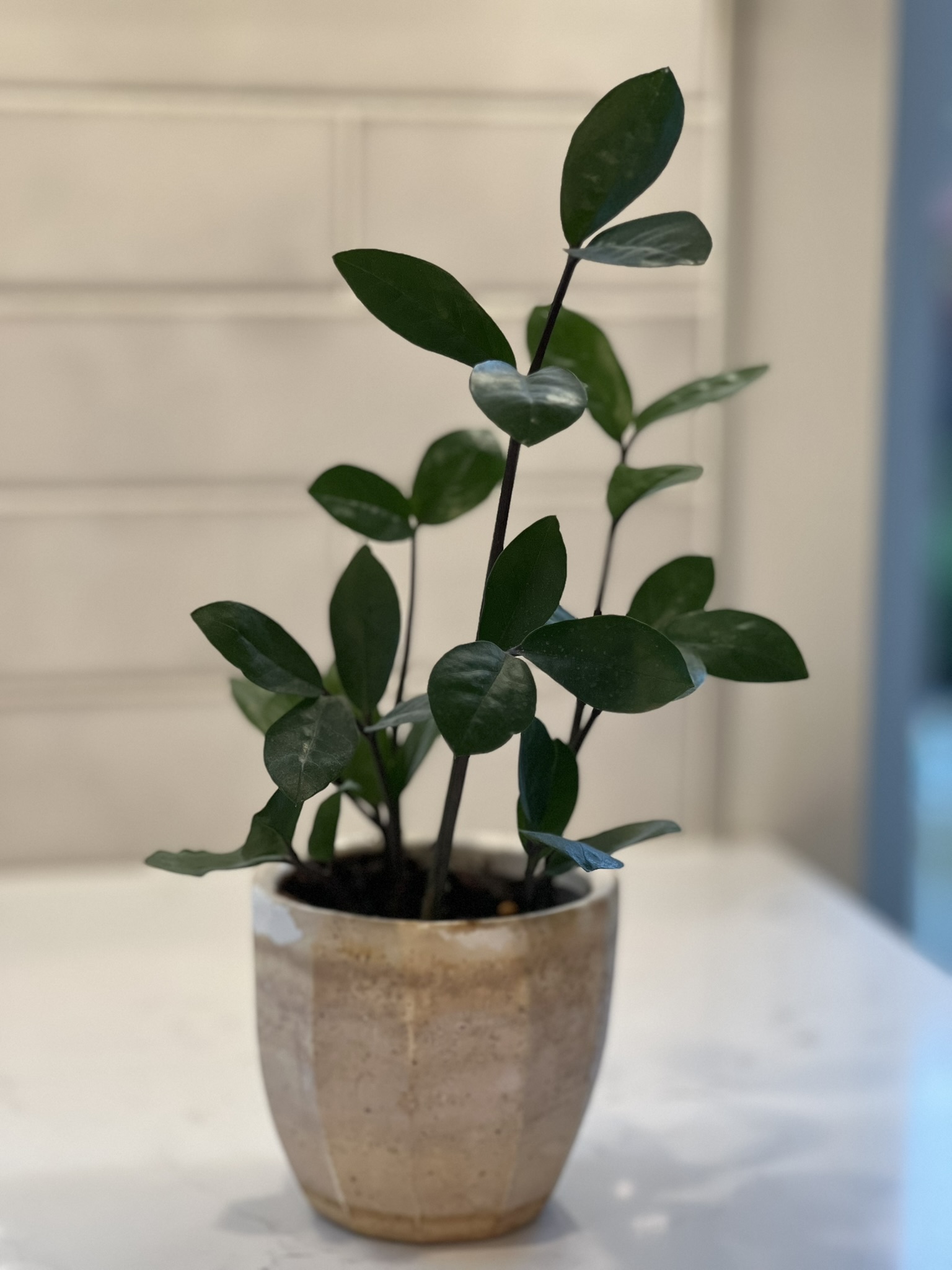 Our final plant is the Zamioculcas, commonly referenced as the ZZ (Zanzibar Gem) plant. This resilient houseplant is famous for being nearly indestructible, making it perfect for anyone looking for a low-maintenance option. Its glossy, dark green leaves add a touch of elegance to any space, and studies show that ZZ plants can help purify indoor air by reducing common pollutants.