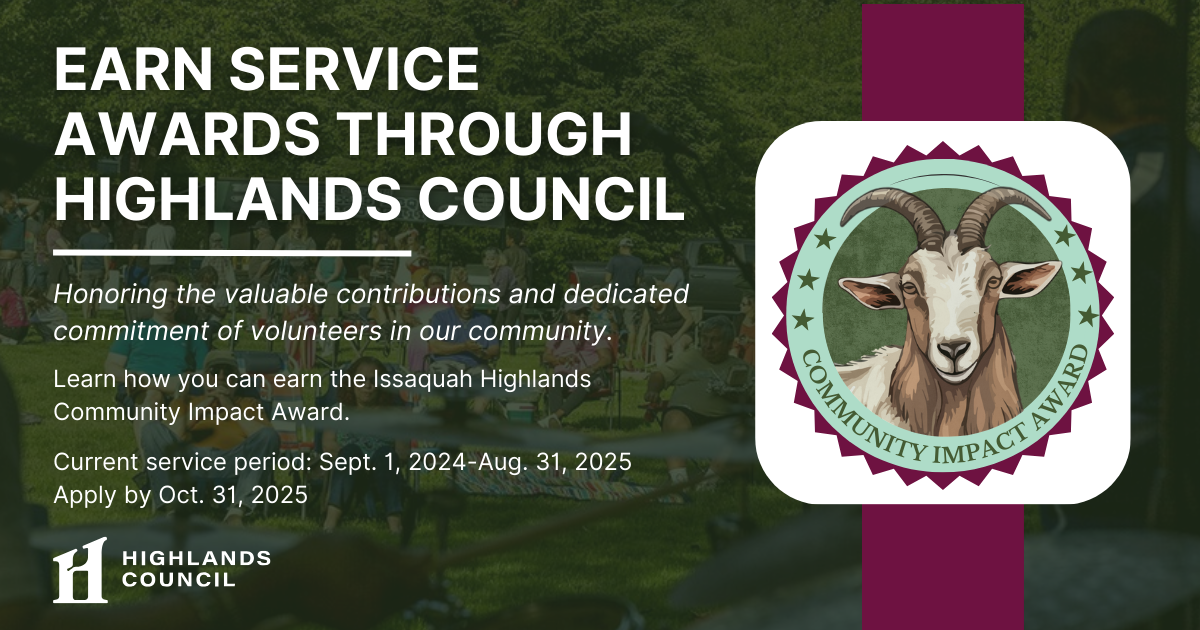 Lindsey Pinkston, Highlands Council Executive Director In HY Board, Volunteer Apply Now to Earn the Community Impact Award Highlands Council is proud to introduce the Issaquah Highlands Community Impact Award, a recognition that celebrates volunteers of all ages…Read More