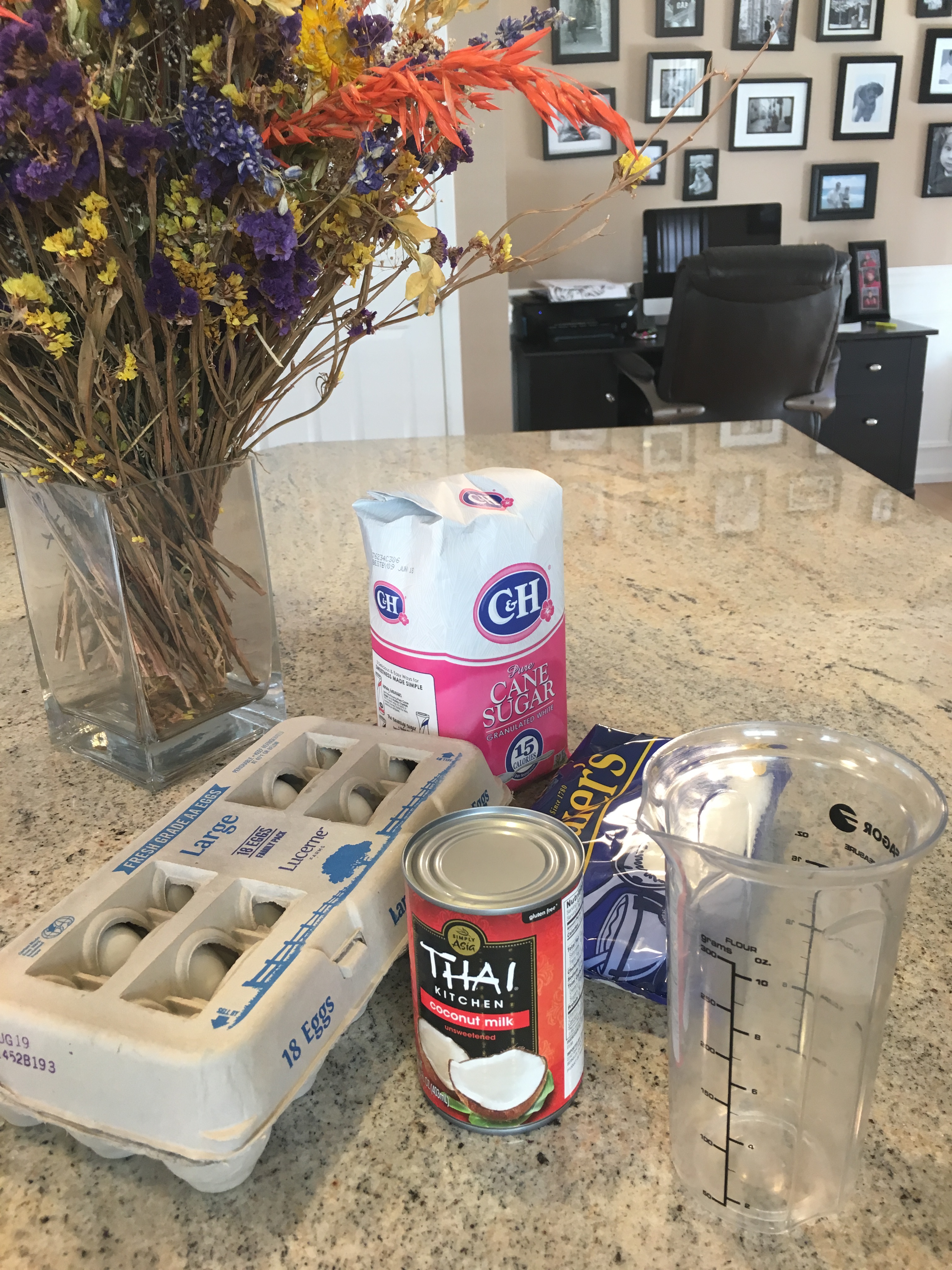 - Mix the 1 cup of sugar, coconut, coconut milk, egg yolks and vanilla in a blender. You can also mix it by hand in a bowl.