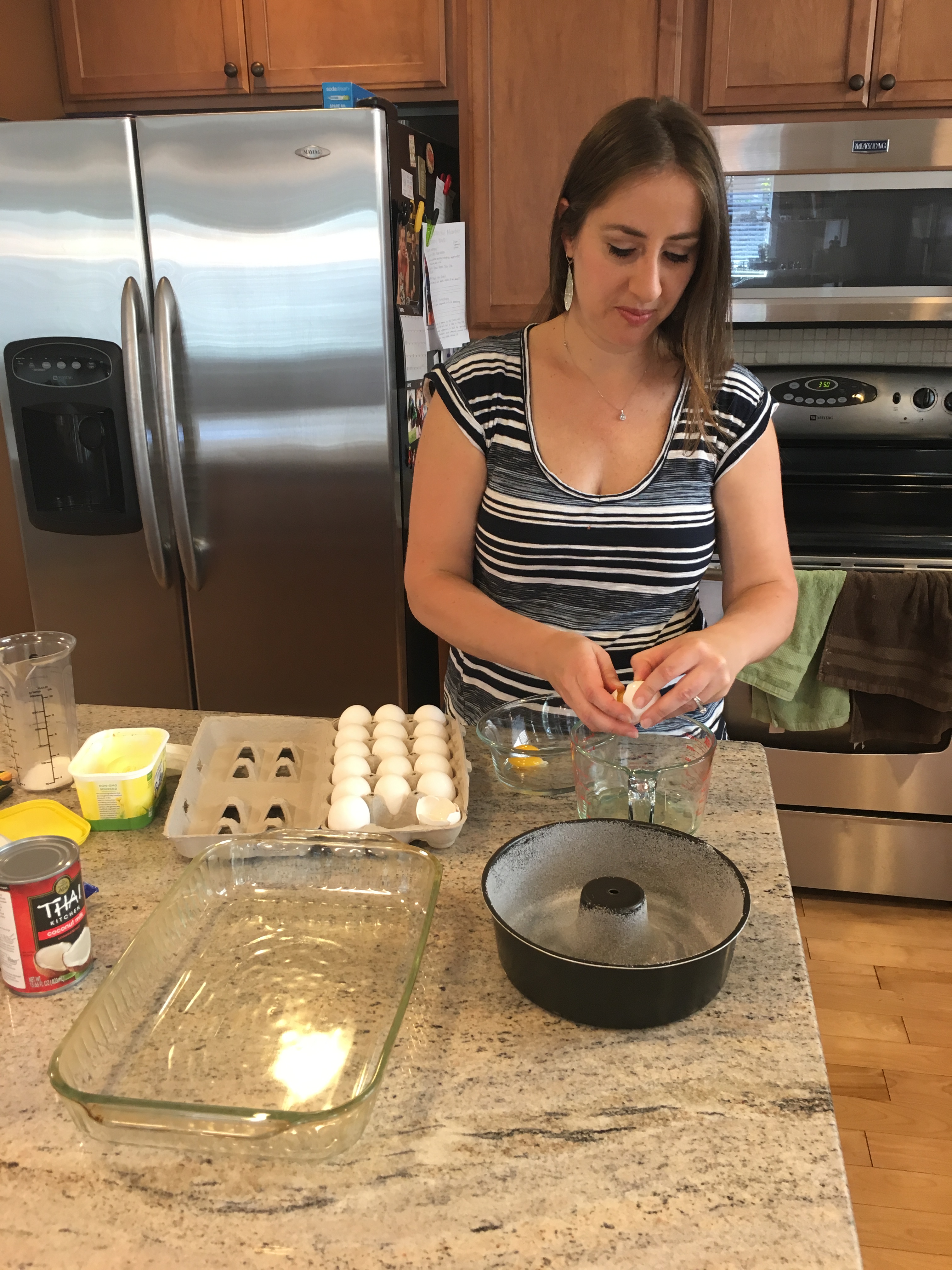 The dessert comes together fast and in the oven. It’s a family favorite. Karenina misses her family, the beach and those pizzas with ice cream (who wouldn’t?). The Quindim comes out of the oven and it may not be from a corner bakery in Brazil, but Karenina serves it to her family and it’s like serving a little bit of home.