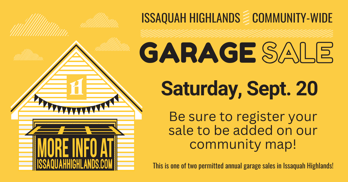 Sep 20 Featured 8:00 am - 5:00 pm Community-Wide Garage Sale Issaquah Highlands Event Details Get Directions