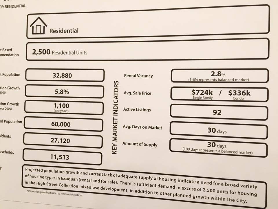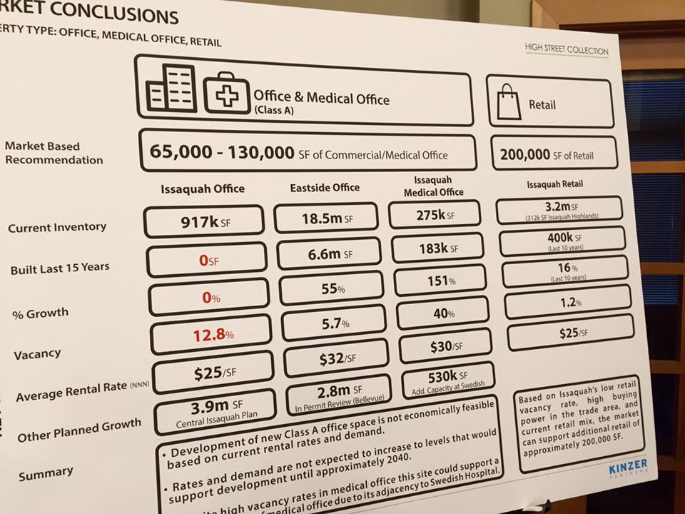 In the preliminary stages of a new development land owners research the opportunities for development and begin informal talks with the City. Last night the developer shared their research findings with the community, Issaquah Highlands and greater Issaquah’s leaders and influencers. The developer gleaned opinions and local knowledge from those who attended.
