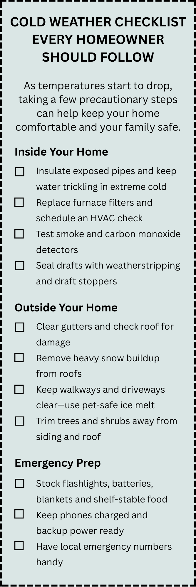 This time of year, I recommend sealing up any small gaps around doors, windows and your home’s foundation. Keep gutters clear and ensure water drains away from the structure. Trim shrubs and tree branches back from the siding and store firewood away from the house. Indoors, be sure food is sealed and crumbs are cleaned up quickly.