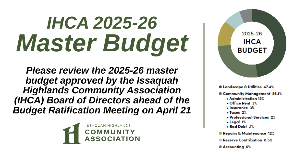 Dear Issaquah Highlands Homeowners: After ratification, the 2022-23 Issaquah Highlands Community Association (IHCA) master annual assessment will increase $12 per…