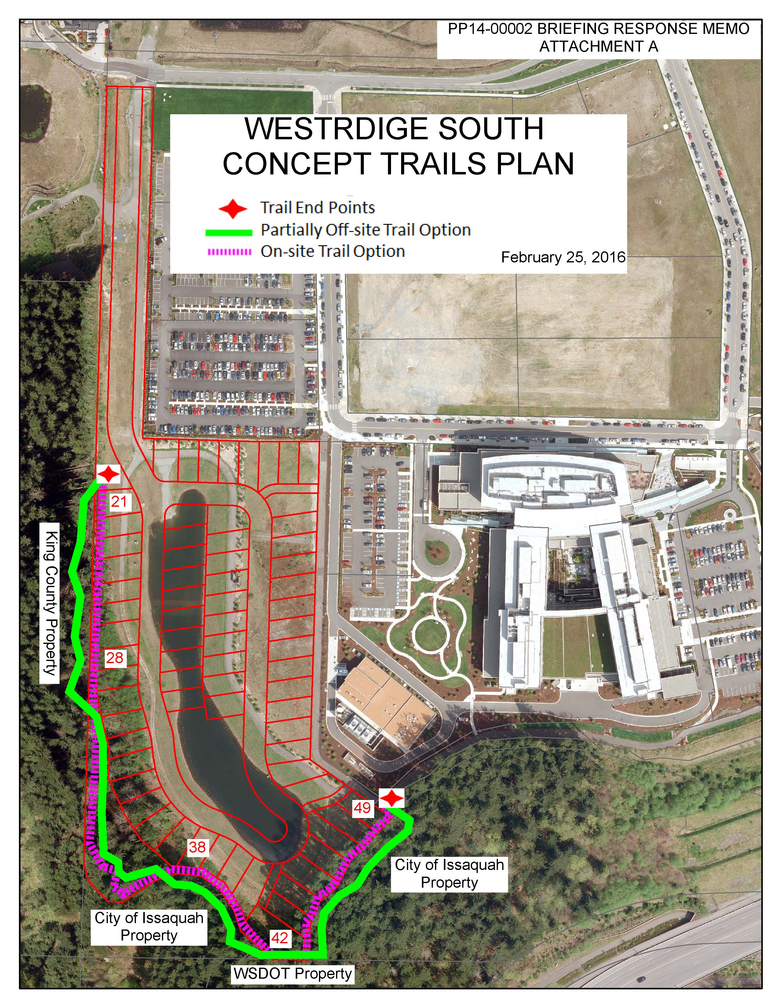 This new trail would run the perimeter of the property, replacing the loop walk many enjoy now around the storm water pond. David Kappler, Vice President of Advocacy for the Issaquah Alps Trails Club spoke in favor of the newly planned trail. Mike Zalewski, resident and de facto representative of West Highlands Park, also spoke in favor of the trail, thanking the staff and the applicant for listening to his concerns. UVDC Chairman Geoff Walker (IH resident) thanked Mike for his participation in the process.